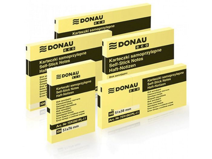 karteczki samoprzylepne Donau 51x76mm, ECO ¿ó³te, 100 kartek